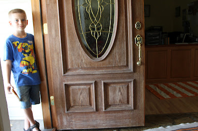 Diesel Boy sanded down the front door and then Military Man stained it and got it looking all brand new again. The after pictures are on the camera.